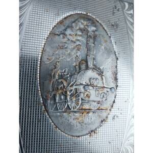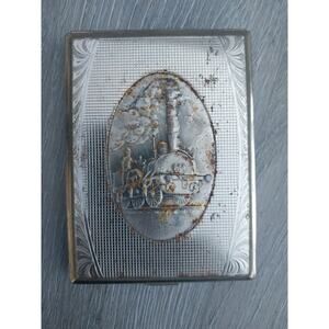 Vintage Tin Cigarette Case with Steam Train on the Front