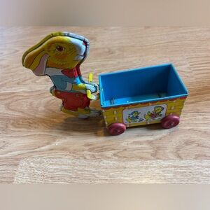 Vintage Tin Easter J Chein Tin Litho Easter Bunny- Wooden Wheels