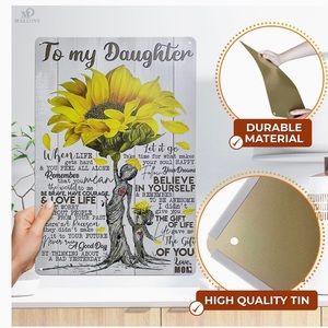 Vintage Tin Metal Sunflower Poster Art “To My Daughter” - 8x12 Inch Sunflower Gifts for Women Metal Tin Sign Inspirational Quote Posters Wall Decor - Mom Daughter Motivational Wall Art Vintage Decor Sunflower Home Decor NIP