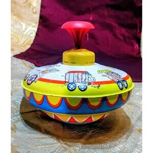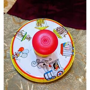 Vintage Tin Spinning Top Toy Ohio Art 1950's Circus Animals Train