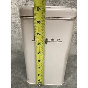 Vintage Tin Sugar Canister With Lid Made In USA. In great vintage condition, chippy in all the right places to really give the canister a vintage look.