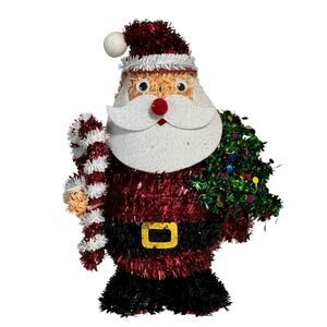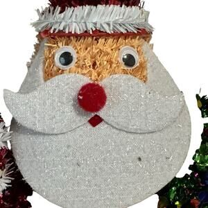 Vintage Tinsel Santa Clause And Tree Christmas Decor Holiday Jolly