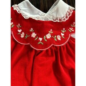 Vintage Tiny Tots Girl 3 - 6 Mo Red Floral Dress Apron 2 Piece Set