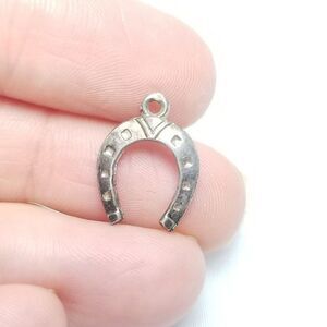 Vintage Tiny Horseshoe Shape Charm Pendant, Silver Tone, Good Luck, Estate