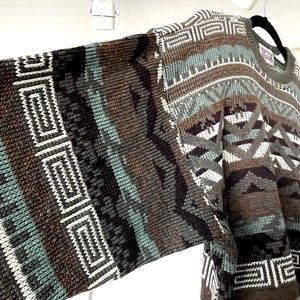 Vintage Tip Top Tailors Brown Teal Long Sleeve Aztec Fair Isle Men's Sweater