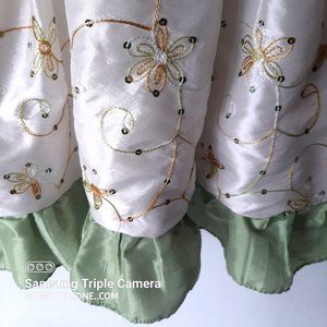 Vintage Tip Top USA Girls 6 Dress Ivy Sage 9202 Embroidered Sequins Ruffles. Full liner is sewn on to front layer plus additional 2 layer lining to keep the puffy effect while wearing. Great attention to detail on this piece. Ivory color with soothing sage color embellishments . Made in USA.