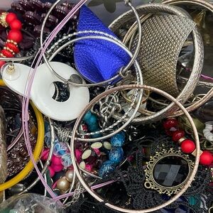 •••This is mostly a vintage to modern craft, repair & repurpose mixed lot of jewelry and accessories with some items in wearable condition but many will be missing stones or matching earring and/or need repairing!•••