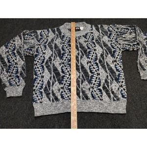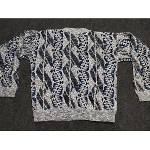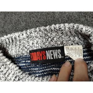 Vintage Todays News Grandpa Sweater Men Large Gray Stripe Long Sleeve Crewneck
