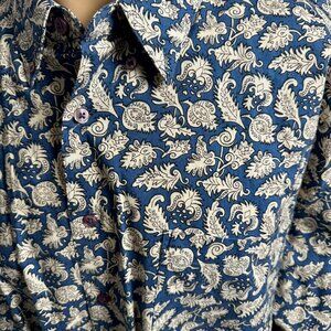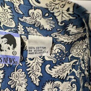 Make a bold style statement with this brand new Today's News men's button-up shirt, featuring a striking white paisley pattern over a rich blue background. Crafted from 100% cotton, this shirt is breathable, stylish, and designed for comfort. Perfect for casual outings, concerts, or vintage-inspired looks.