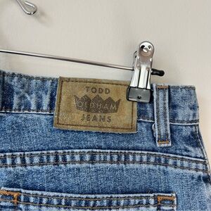 Vintage Todd Oldham Sparkle Flare Jeans. appears to be some light discoloration on the one leg - otherwise in great condition!