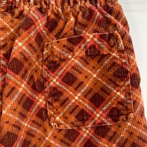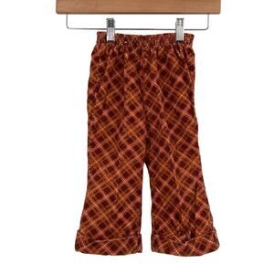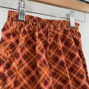 Vintage Toddler 3T 70s Plaid Rust Orange Flare Corduroy Elastic Waist Pants Fall
