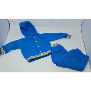 Vintage Toddler Blue Striped Jogger Outfit Acrylic 3T Sweat Jacket and Pants