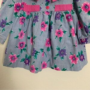 Vintage Toddler Girl Floral Polka Dot Dress 3T Big Collar Chambray 80s Cute Pink
