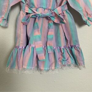 Vintage Toddler Girl Rainbow Stripe Dress 2T Lace Buttons Ribbon Kawaii Bow Cute