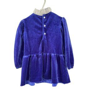 Vintage Toddler Girls 4T Blue Velvet Lace Dress Long Sleeve Party Holiday Used