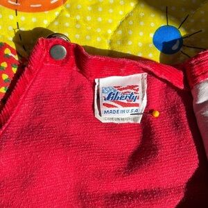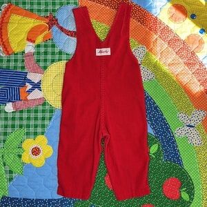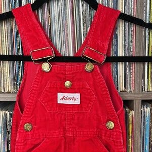 The cutest little vintage, red corduroy bib overalls by Liberty.