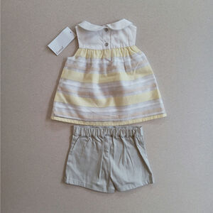 Paired to bundle: an adorable NWT Camilla outfit - a sleeveless shear striped lined dress top with elastic back khaki chino shorts