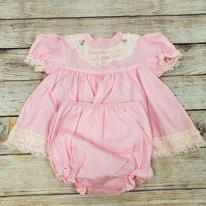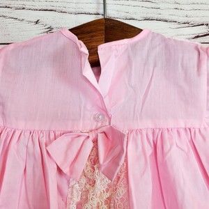 In Good Condition. Girls Size 24M. Super Adorable Vintage Dress. Comes With Bottoms. Lace Detail On Upper And Lower Dress. Back Button Closure. Missing Top Button. Small light Markings From Age. Non Noticeable When Worn. Made In The USA. From Smoke-Free Pet-Free Home.