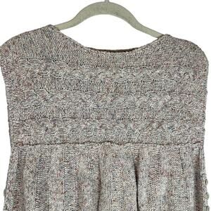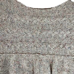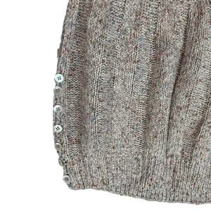 Good preowned condition, 55% silk, 30% acrylic, 15% wool, color is a taupe gray with multi color flecks, side button accents, deep arm holes