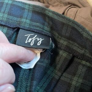 Vintage Tofy size 10 pleated plaid school girl Irish Scottish skirt . Button zipper at side. Made in U.S.A. Top of skirt side to side 14” and length 22.5”.