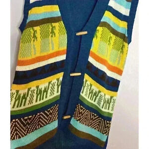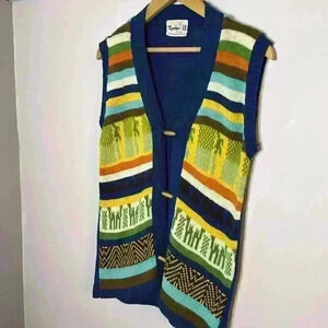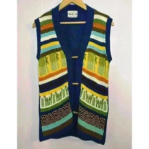 This vintage Together sweater vest is a must-have for any fashion-forward woman. With its colorful striped pattern and tight-knit acrylic material, it's perfect for the winter, fall, or spring seasons. The sleeveless design and collarless cut make it a versatile piece for both travel and casual occasions.