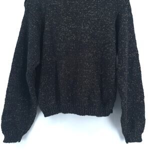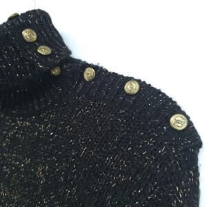 Vintage Toi Turtleneck Thick Ribbed Black & Gold Metallic Sweater Gold Buttons L