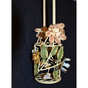 Vintage Tole Bottle Caddy with Floral Print Italian Regency Cottage Chic