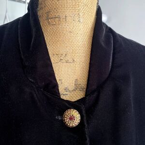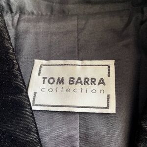 Vintage Tom Barra Black Velvet Collarless Blazer Button Front Whimsigoth Size 12
