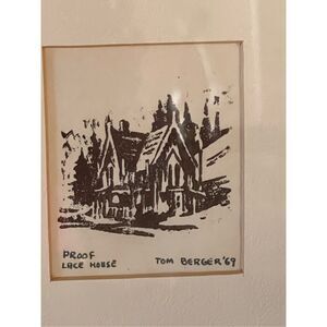 Vintage Tom Berger “69 “Proof” Lace House print framed . Thomas Berger American was a Novelist and I wonder if this was a proof for a picture in one of his books. Signed on front and information on back. Framed in a metal wood looking glass front frame. Matted