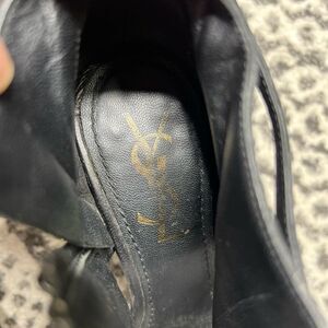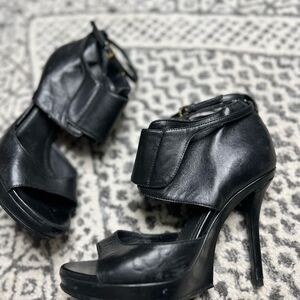 These vintage Tom Ford for YSL AW 2010 black leather open vamp stilettos are a true statement piece, originally priced at $1275. In excellent condition, the soles have been protected for longevity. Some visible wear on the leather adds character, but these heels still have plenty of life left to elevate any outfit.