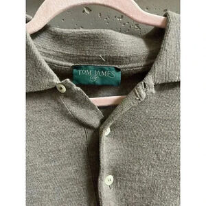 Vintage Tom James Men's Polo Shirt Long Sleeve Size XXL Gray Wool Silk Cashmere