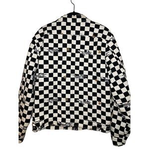Excellent condition vintage checkerboard lightweight bomber style jacket by Tom & Jerry. Cartoon characters on a black & white background checkerboard.