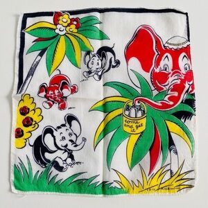 Vintage Tom Lamb Child's Handkerchief with Elephants, 1940s Childs Hankie