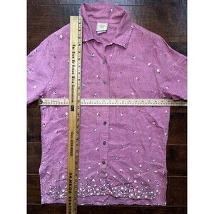 Vintage Tom Tom California Linen Floral Print Pink Boho Button Down Sz S