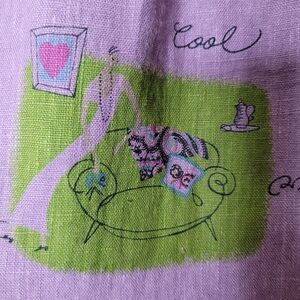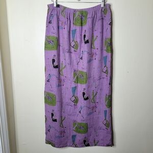 90s artsy fashion, boho eclectic skirt, gallery clothing, wearable art skirt, art teacher aesthetic clothing, rare vintage linen, statement print skirt, purple linen midi, retro café print clothing, mod inspired print skirt, quirky chic outfit, cottagecore artsy fashion, vintage made in USA skirt, colorful vintage skirt, minimalist with a twist, dopamine dressing clothing, artsy capsule wardrobe, festival art skirt, unique collectible linen skirt, slow fashion vintage clothing