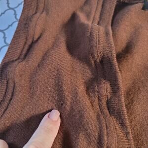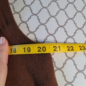 Brown in color- Cardigan does have small pin hole to right chest region, more than likely from brooch.