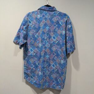 Vintage Tomato Mens SS Button Up Graphic Shirt Size L Blue Abstract Artsy 80s 90