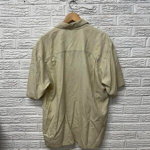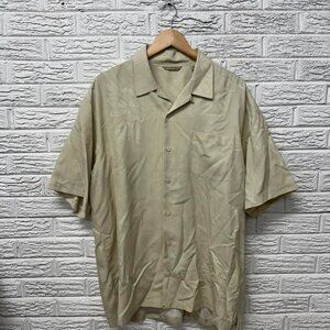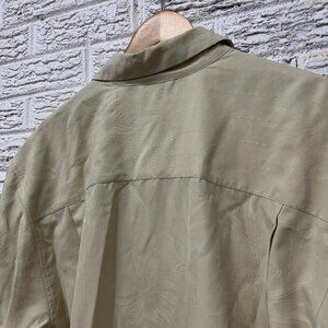 Vintage Tommy Bahama 100% Silk Hawaiian Shirt XL Beige 90s Floral and Palm Tree