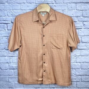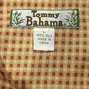 Vintage Tommy Bahama Men Orange Hawaiian Short Sleeve 100% Silk Shirt Large Flaw