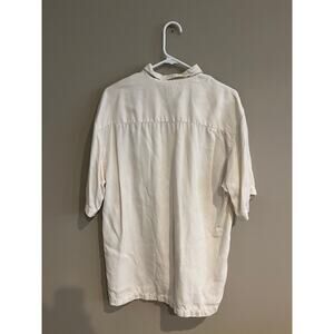 Vintage Tommy Bahama Polo Shirt 100% Silk Button Up Ivory Beige Men's Medium