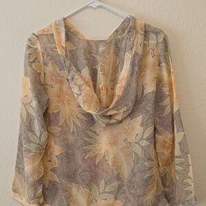 Vintage Tommy Bahama Sheer Crepe Silk Floral Hooded Blouse Size S Beachy