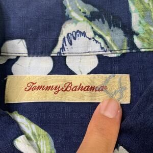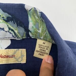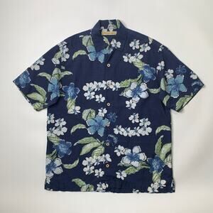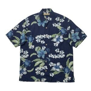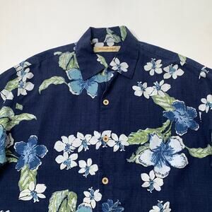 VINTAGE TOMMY BAHAMA SHIRT MENS M MEDIUM NAVY SILK FLORAL SHORT SLEEVE CAMP