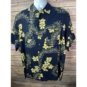 Vintage Tommy Bahama Silk Hawaiian Shirt Men's S Blue Green Floral Button Up