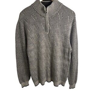 Vintage Tommy Bahama Sweater Mens XL Quarter Zip Ribbed Cable Knit Brown Taupe