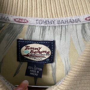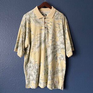 Vintage Tommy Bahama Yellow Palm Print Short Sleeve Polo Shirt Men's Size Large
