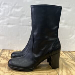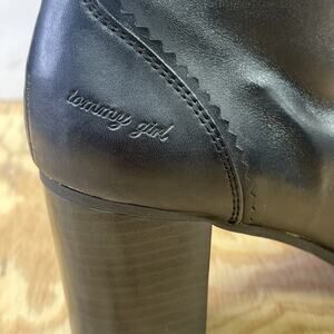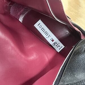 Vintage Tommy Girl Black Leather Chunky Heeled Boots Size 8.5M 90s Y2k