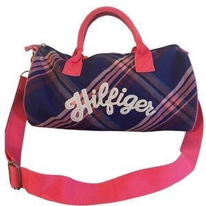 Vintage Tommy Hilfiger 13”x10”Plaid Academia Duffle Crossbody Bag Pink Blue