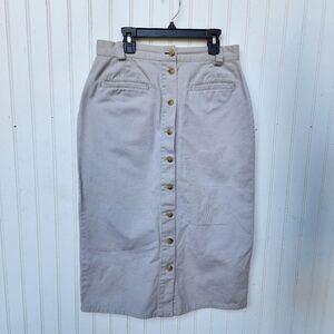 Vintage Tommy Hilfiger Button Down Midi Skirt Women's Beige Khaki W.28 Sz 10