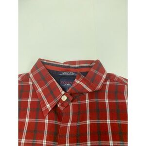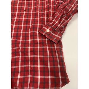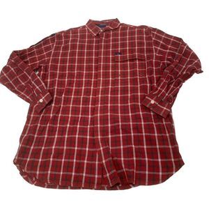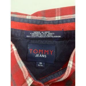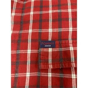 Mens red cotton multicolored plaid patterned vintage button Down Tommy Hilfiger top. Excellent vintage condition. Mens size medium.