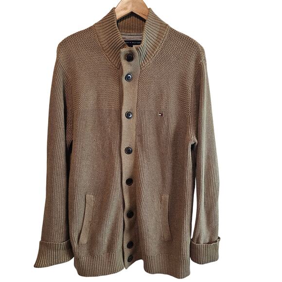 Vintage Tommy Hilfiger Cardigan Mens Large Brown Y2K Ribbed Knit Preppy Academia